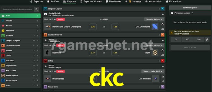 O ckc oferece uma grande seleção de opções de apostas em e-sports com probabilidades competitivas